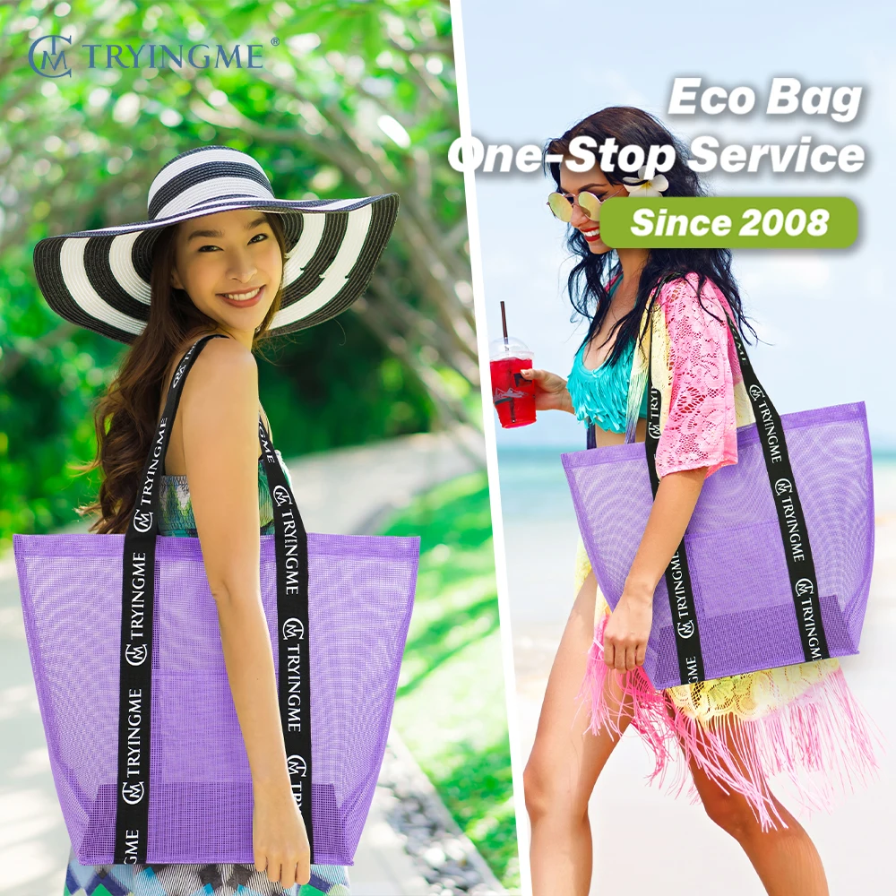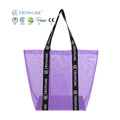 Custom Logo Large Capacity PVC Mesh Shopping Tote Fashion Black Net Fruit Vegetable Carrying Bag with Shoulder Strap
