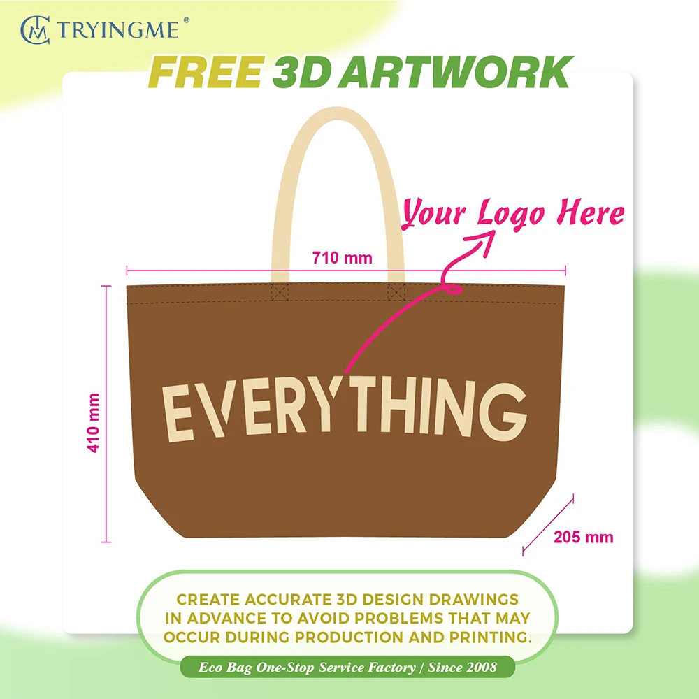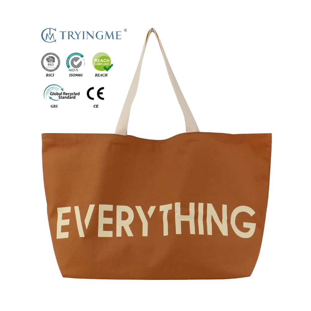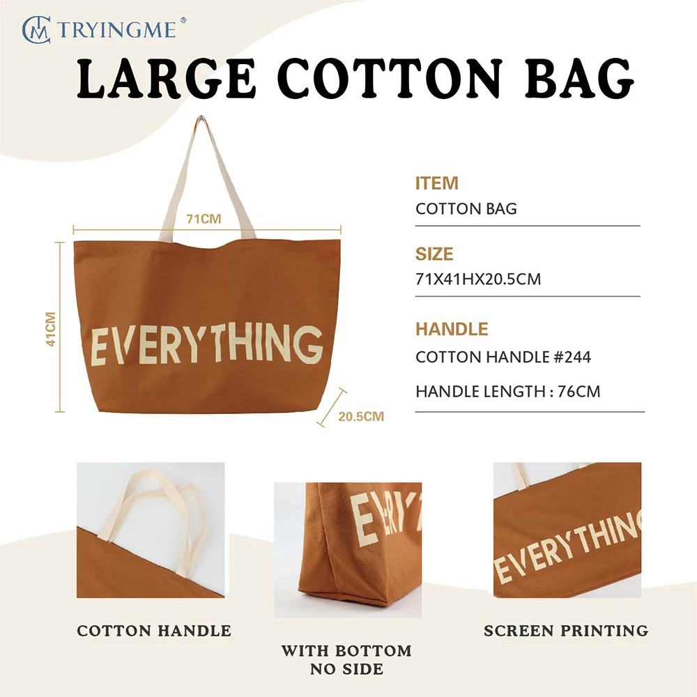 Custom Logo Printed Oversized Cotton Canvas Tote Bag Foldable Reusable for Outdoor Travel Stylish Letter for Advertising Gift