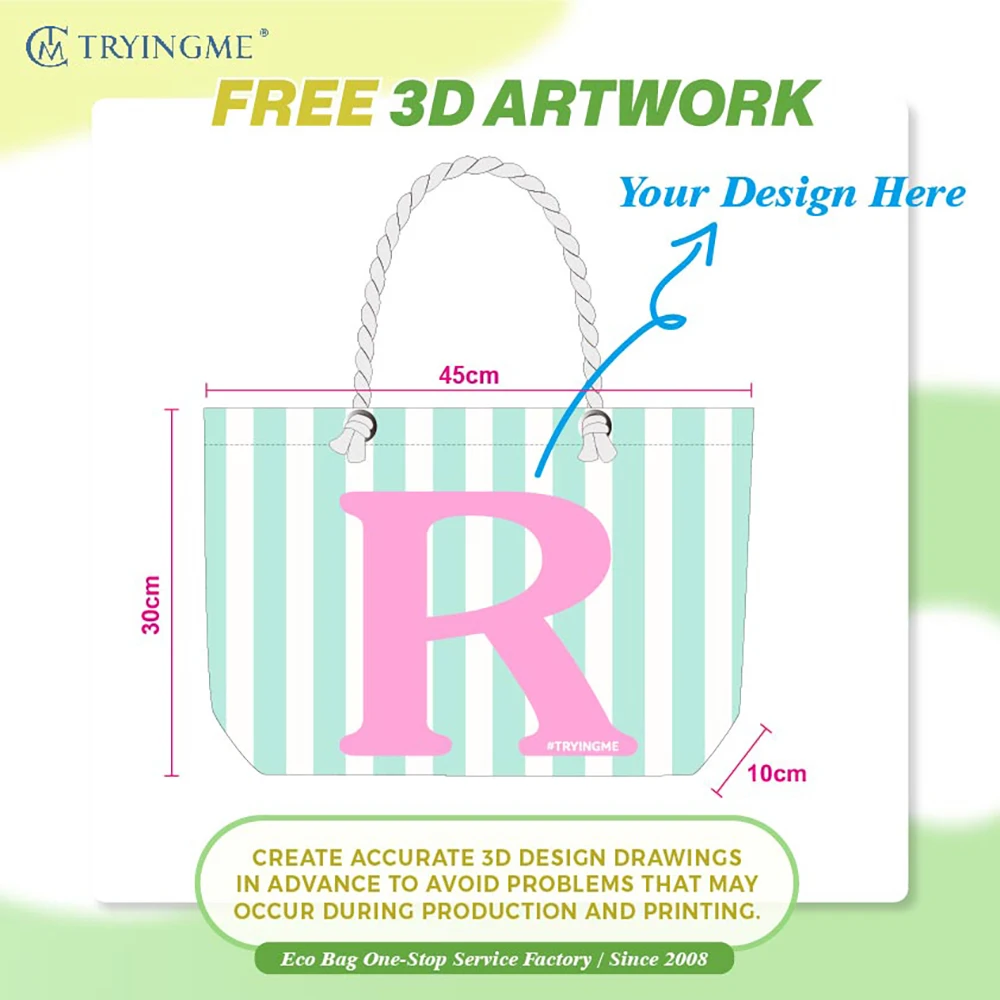 Customized Folding Cartoon Stripe Storage Bag Cotton Clear Pouch Bag Handle Accessories