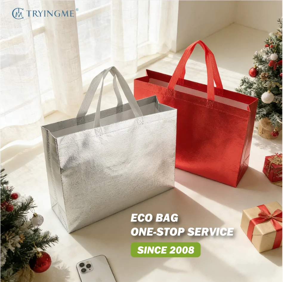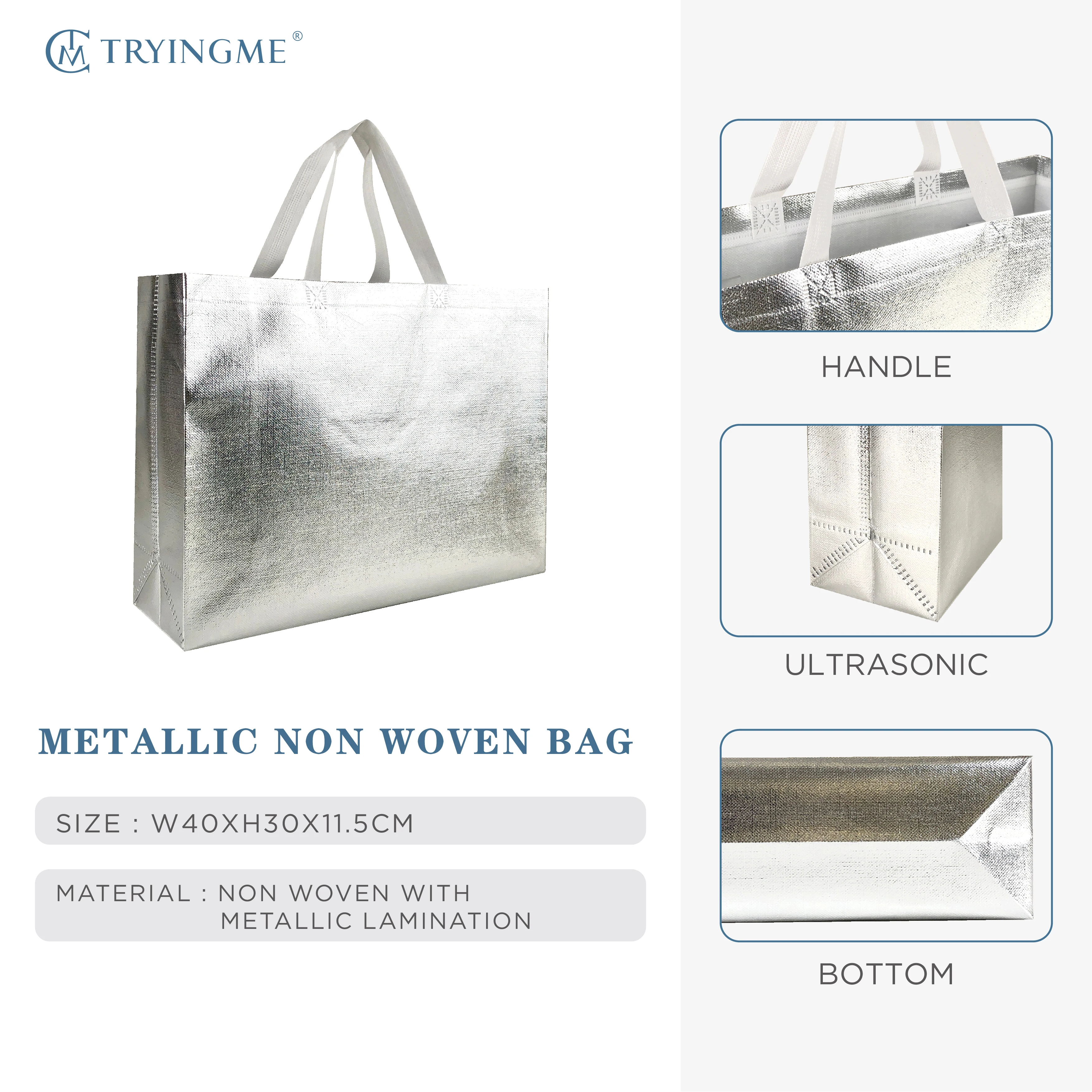 Customized Logo Silver Metallic Tote Bag Glitter Non-Woven Portable Shopping Shoes Clothing Gift Packaging Reusable Supermarket