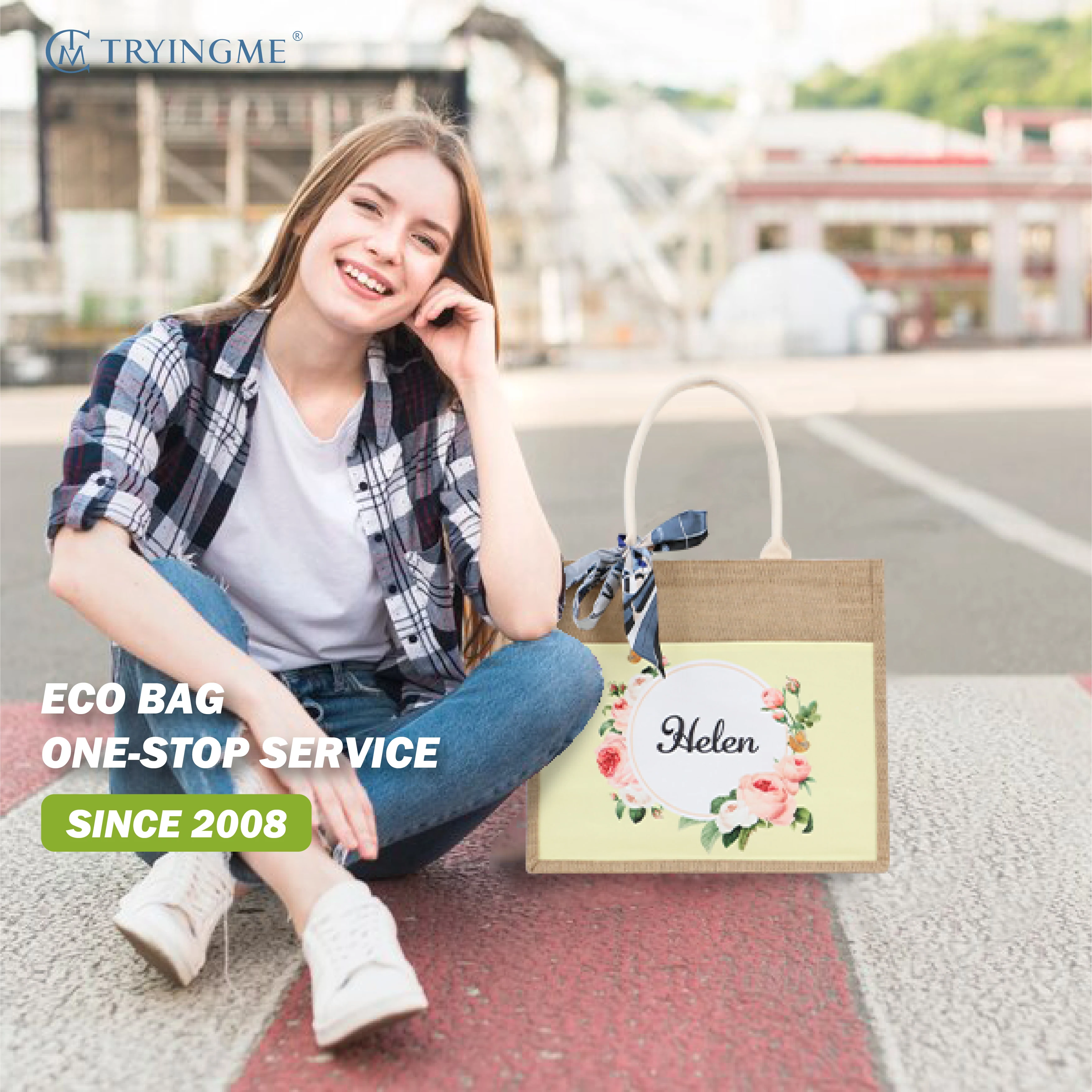 Factory Cheap Heavy Duty Larger Reusable Biodegradable Recyclable Burlap Jute Bag with Pocket