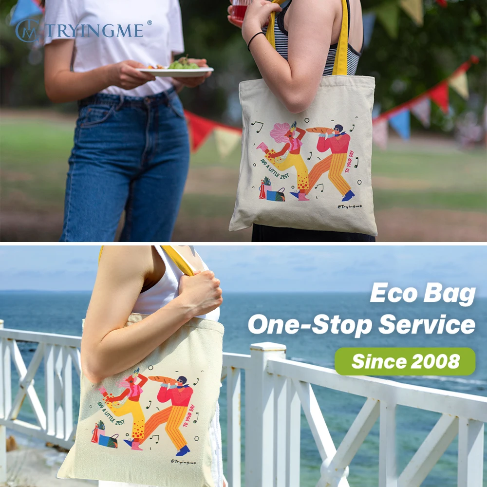 Factory Price Eco-friendly Printed Cotton Canvas Tote Bag with Handle for Trade Shows and Everyday Use