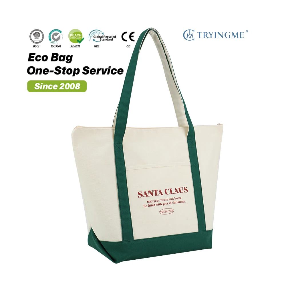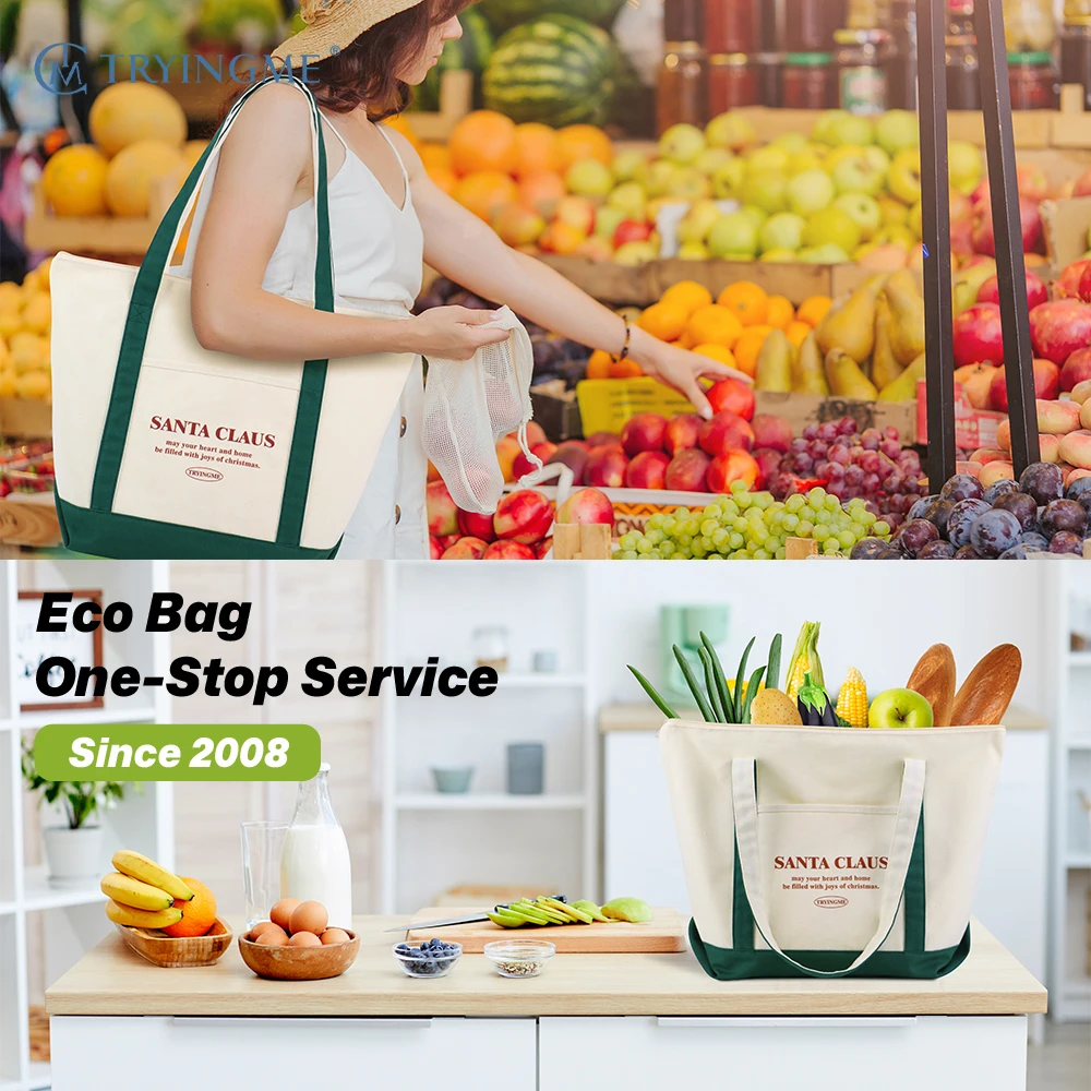 Large Capacity Cotton Shoulder Tote Bag with Reusable Green Patchwork Design Eco-Friendly Handbag for Shopping and Storage