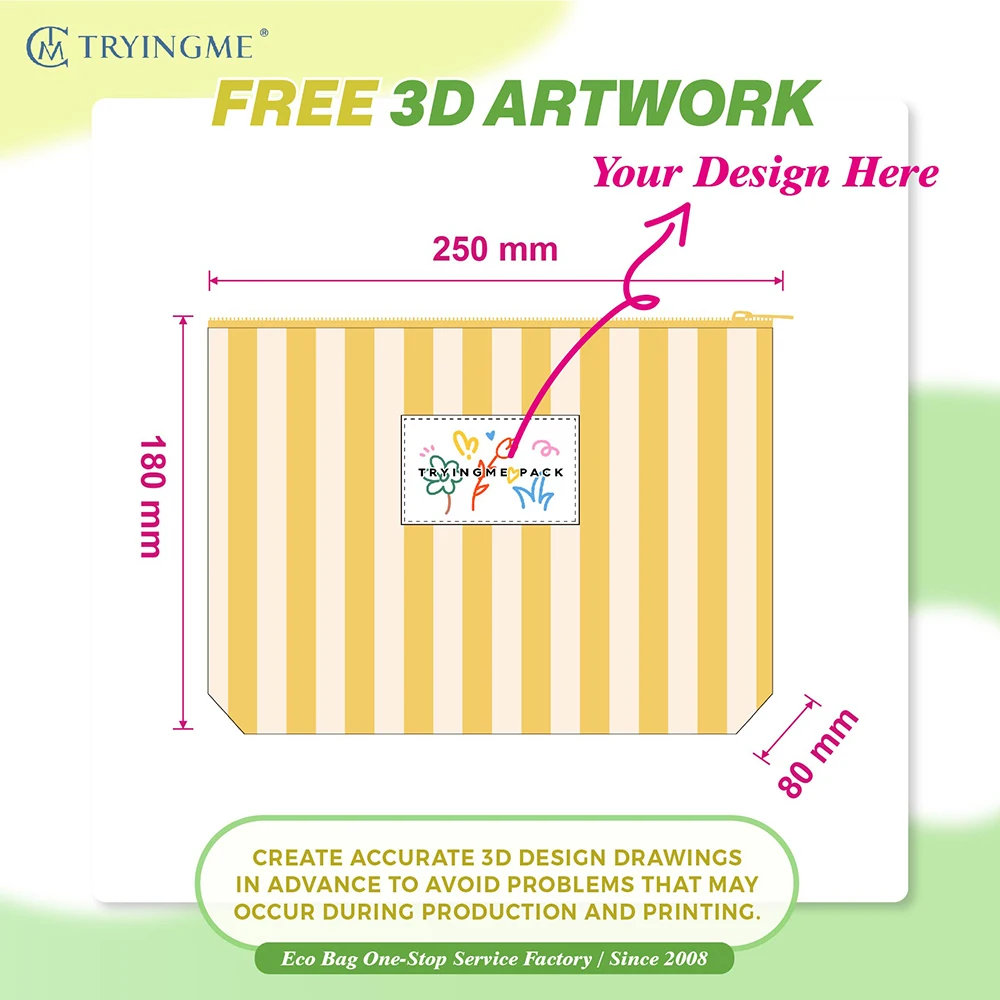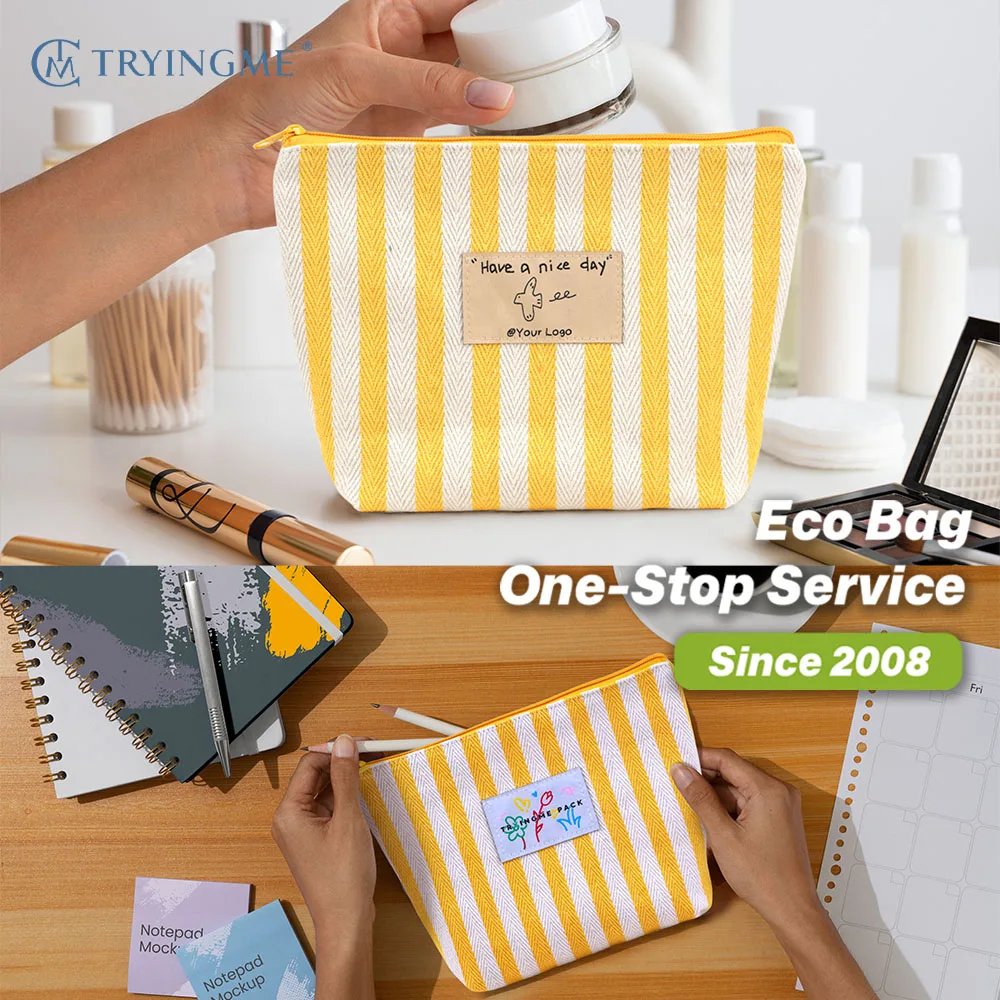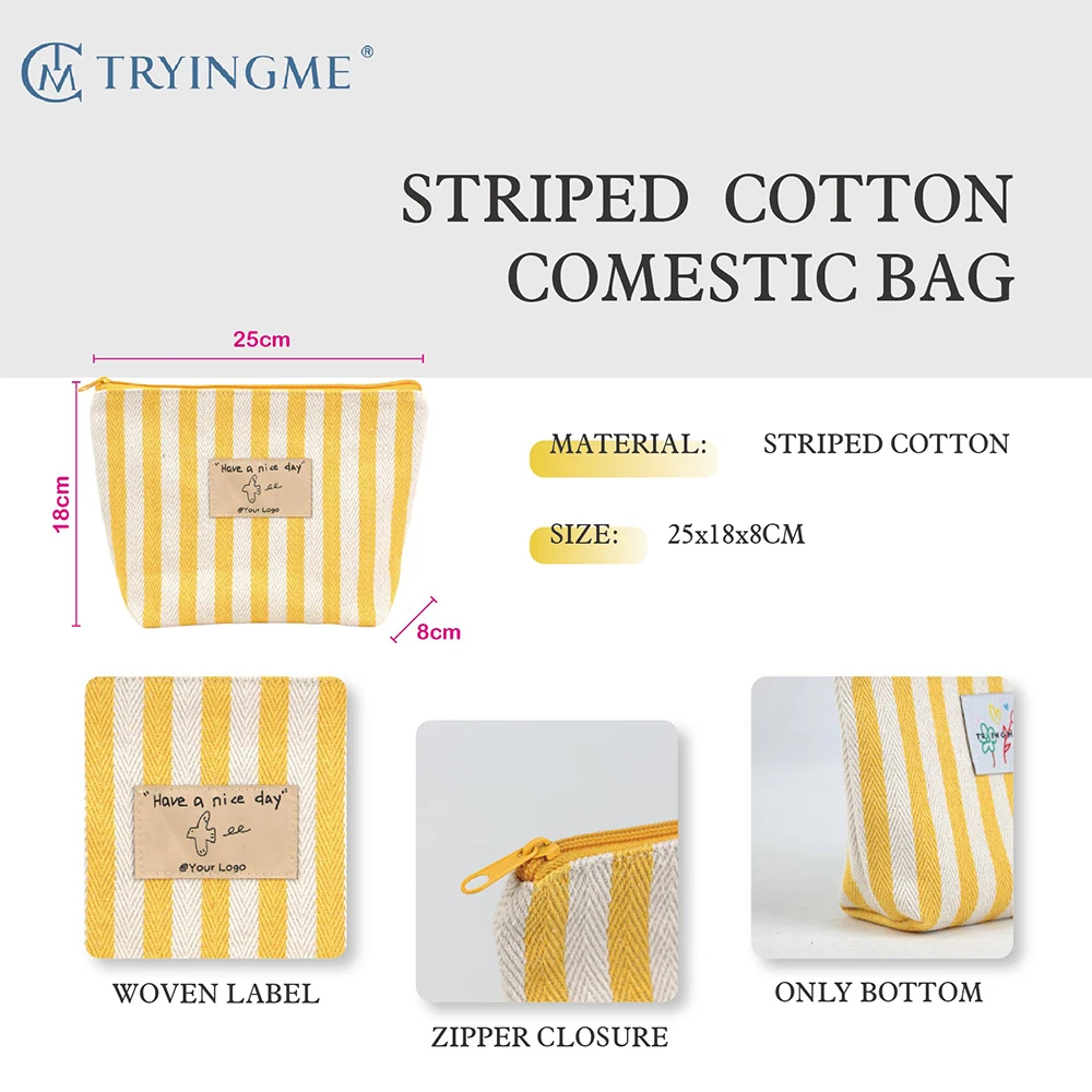 Luxury Eco-friendly Women's Travel Cosmetic Pouch Custom Logo Canvas Striped Cotton Fashion Style Portable Zipper Bag