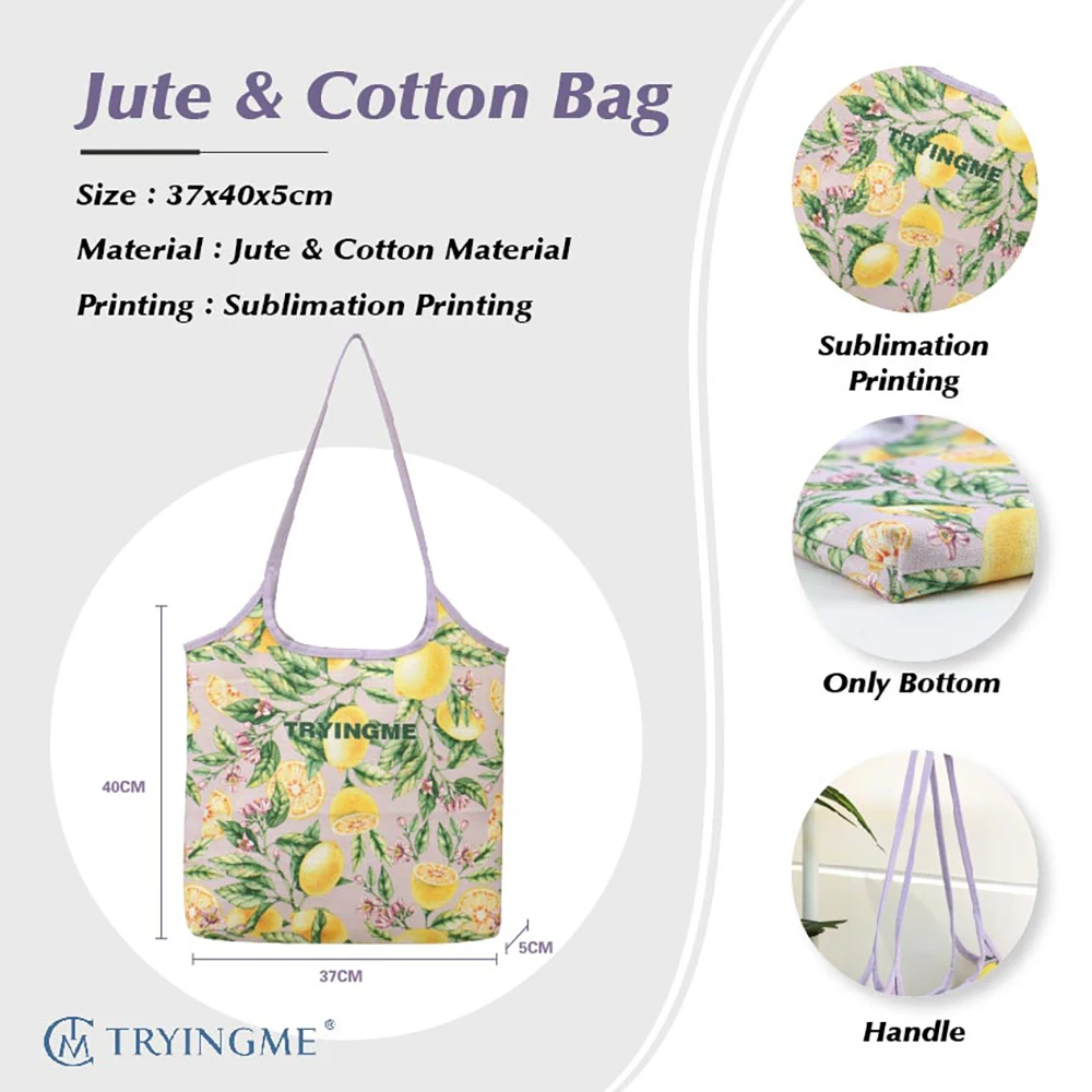 New Arrival Customized Reusable Cotton Linen Tote Bag All Over Printed for Outdoor Use