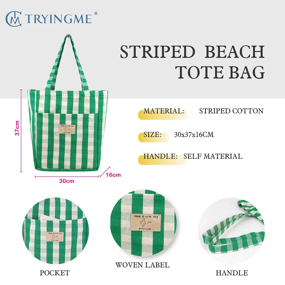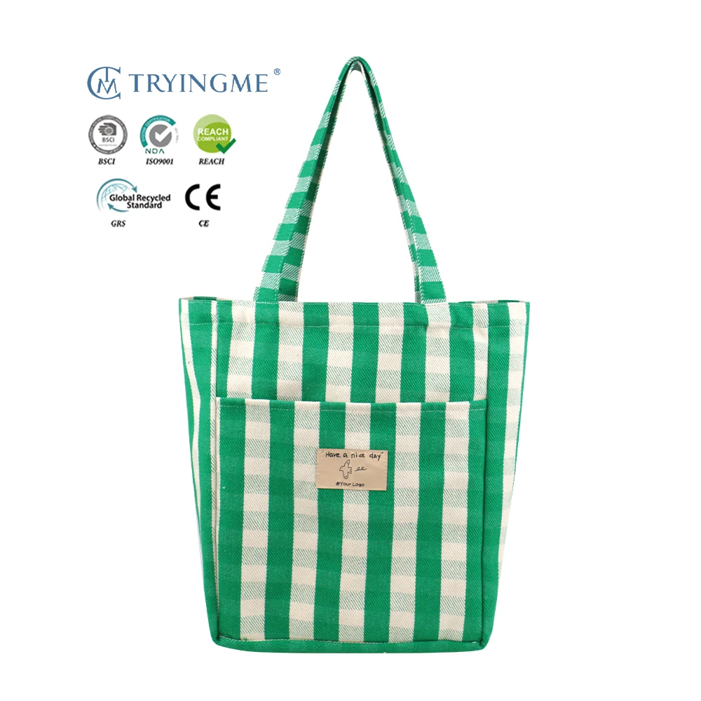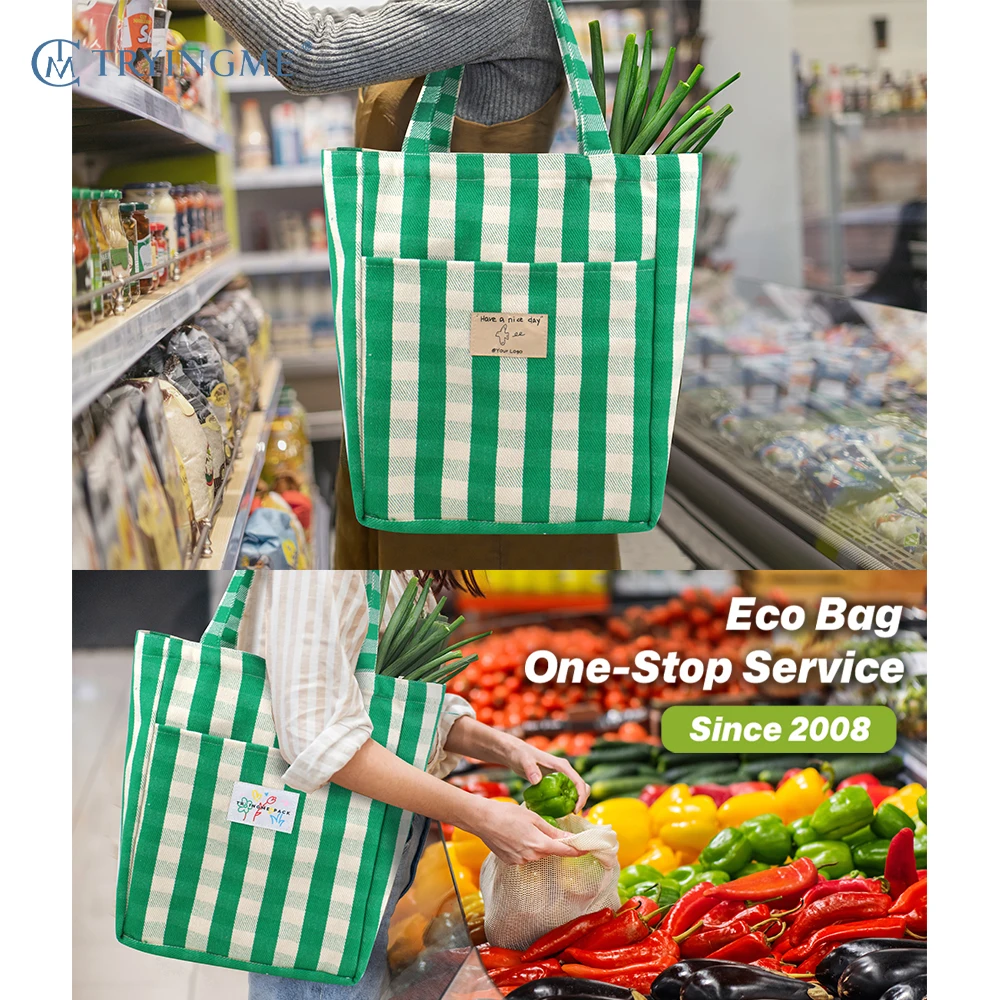Promotional Eco-Friendly Cotton Canvas Tote Bag Reusable Striped Shopping Bag in Multiple Colors
