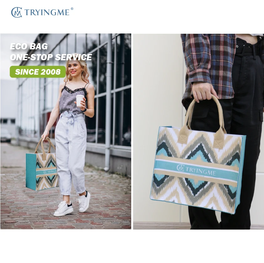 Wholesale Custom Logo Colorful Felt Tote Bag Fashionable Open Closure Handbag with Embroidery Decoration for Shopping Gift Bags
