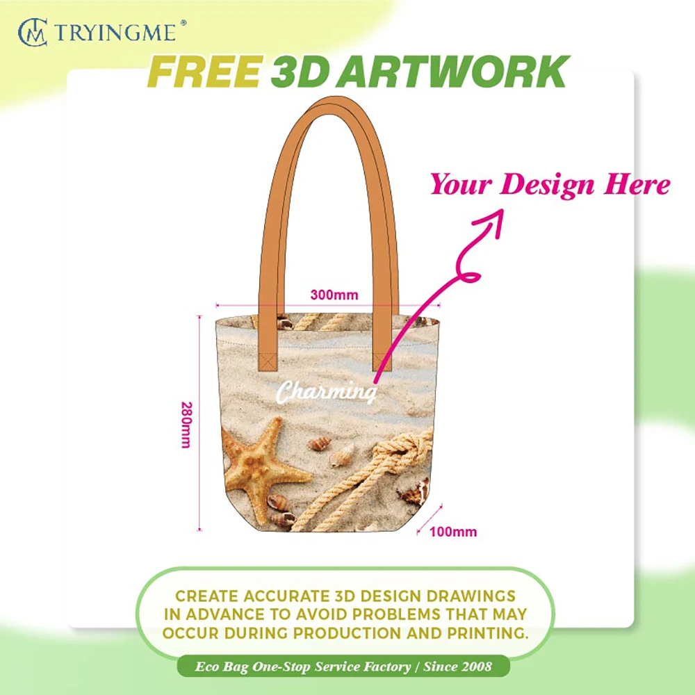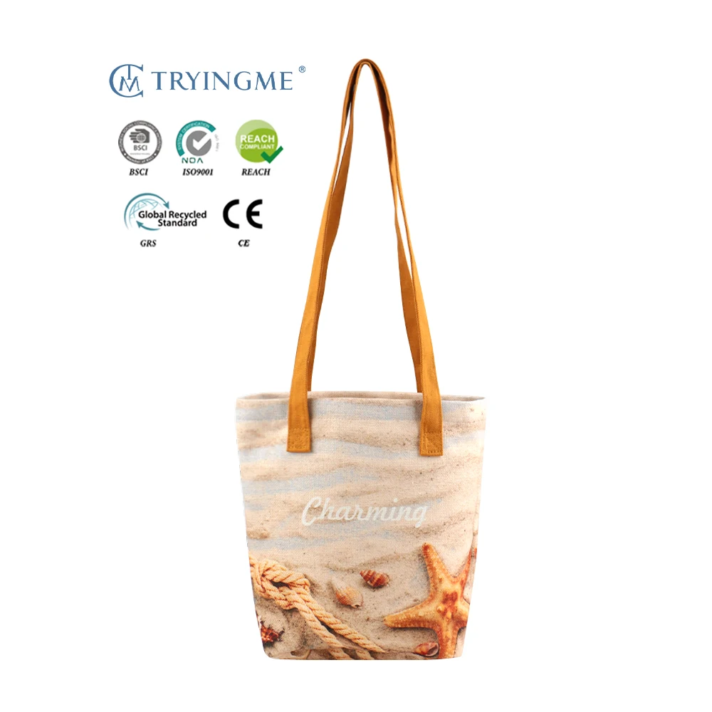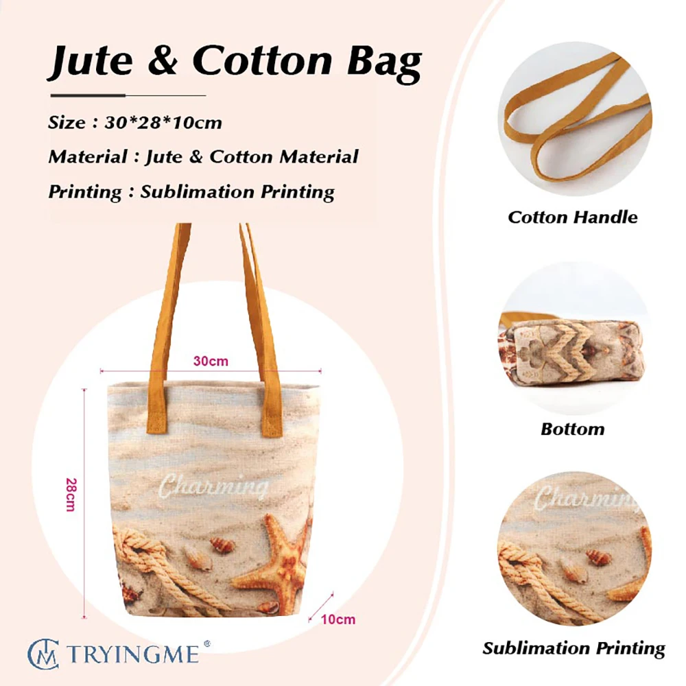 Women's Fashion Design Summer Cotton & Jute Beach Bag Custom Pattern Canvas Shopping Bag